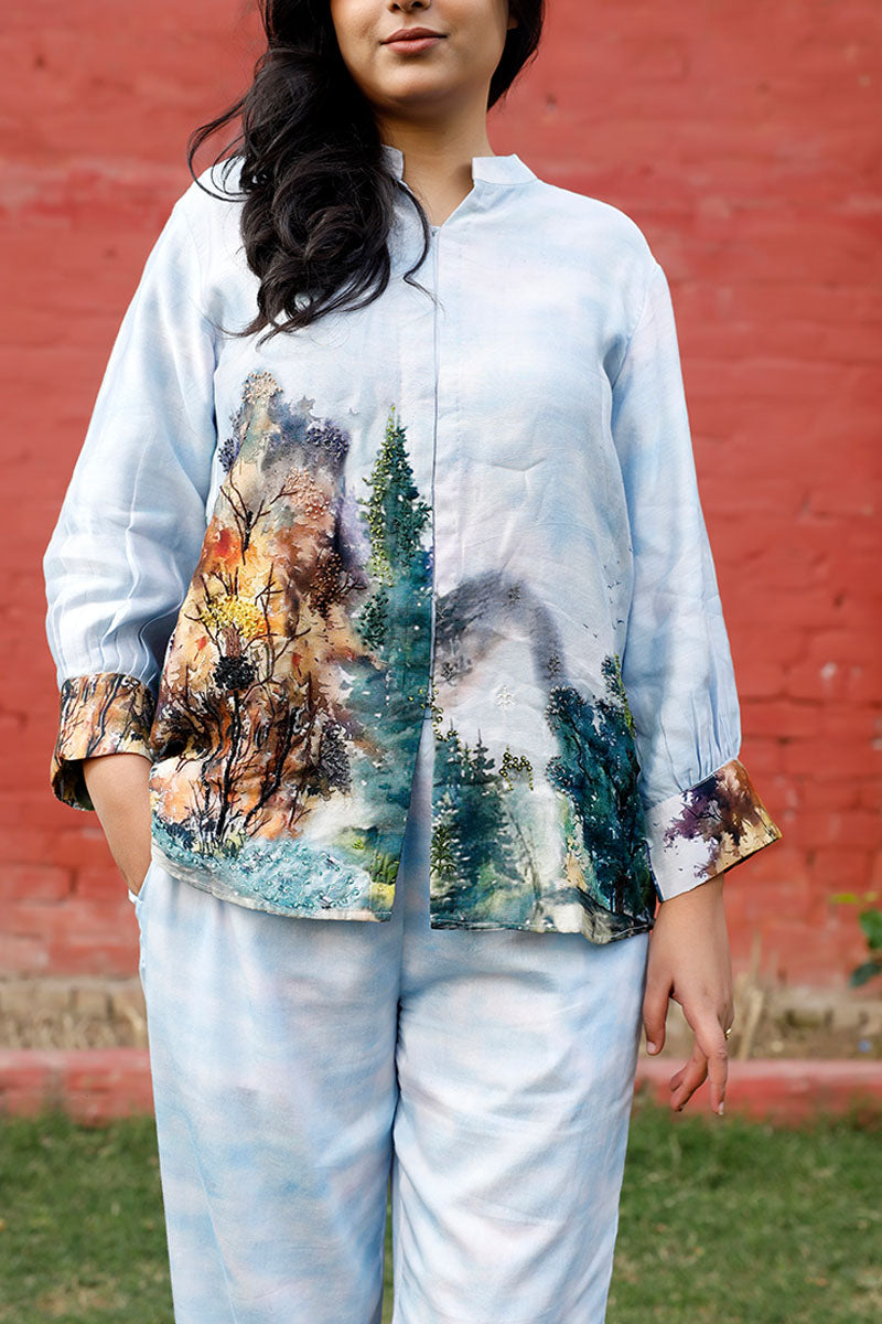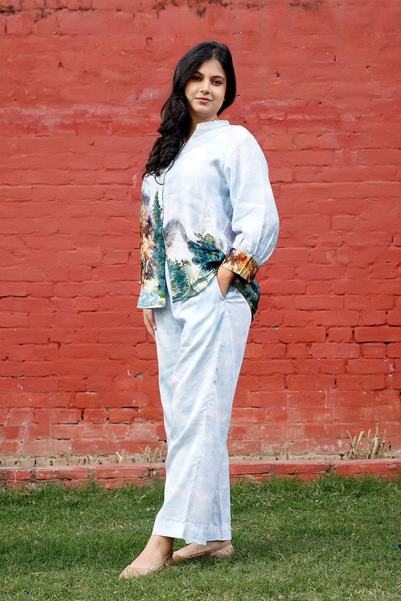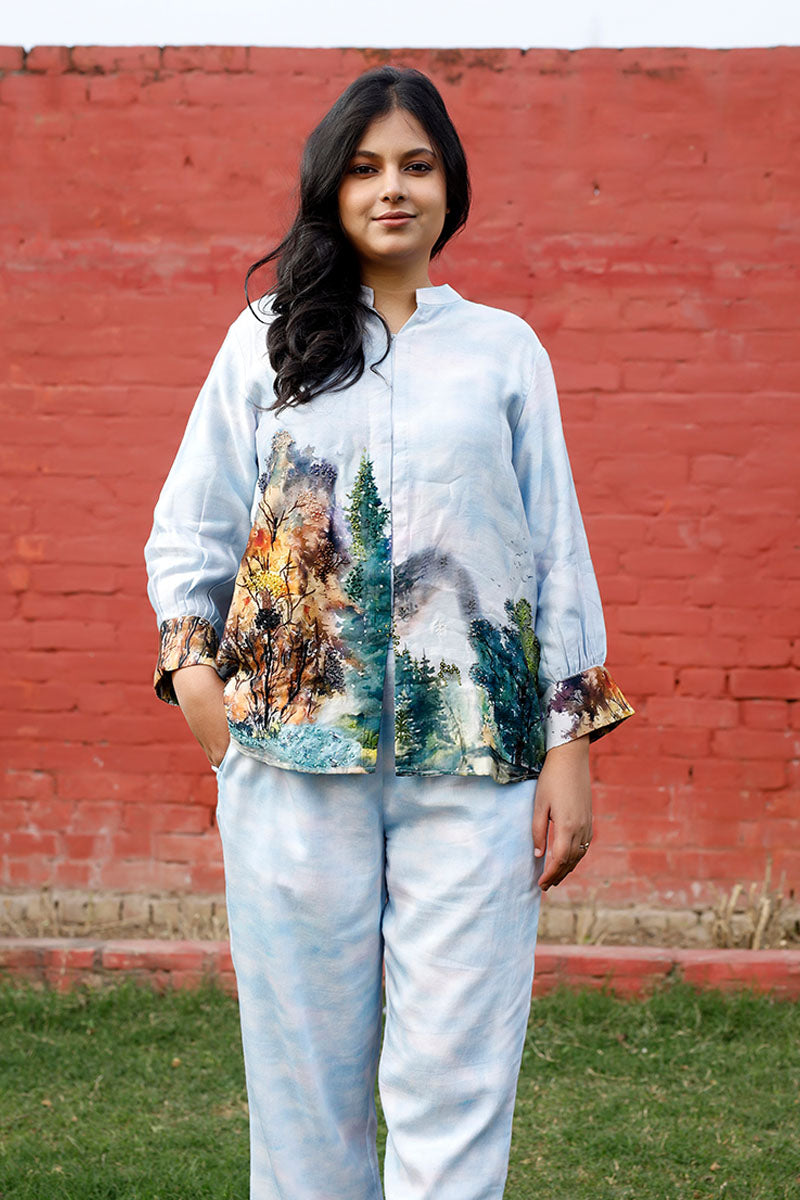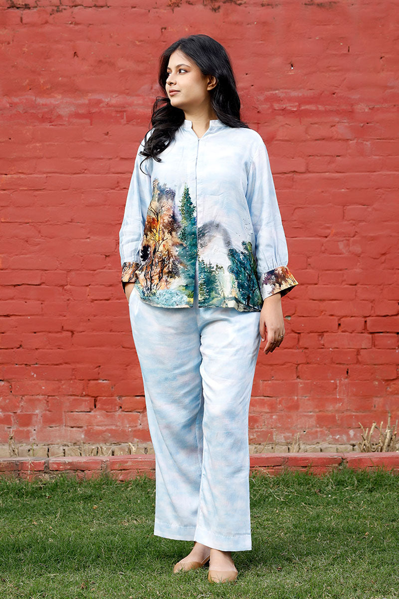 Baby Blue Floral Printed Cotton Co-ord Set