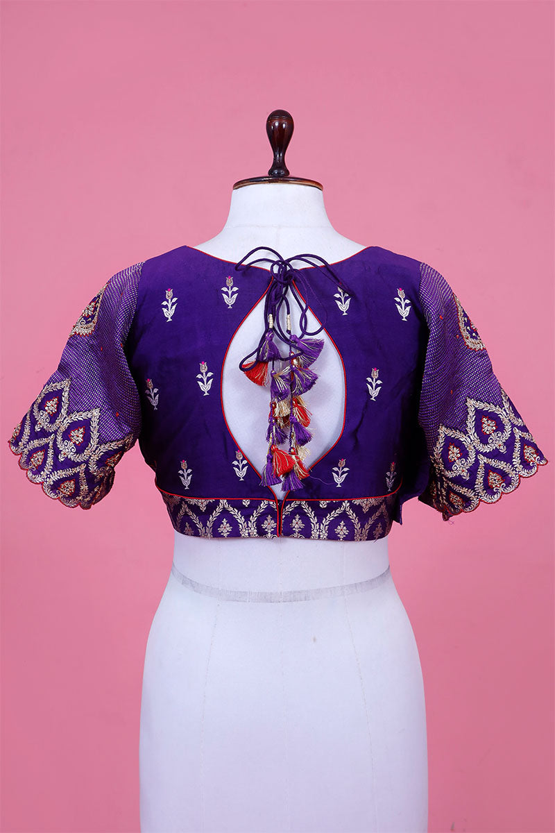 Tips: Pair this purple Banarasi silk blouse with a matching saree or lehenga for a regal look.