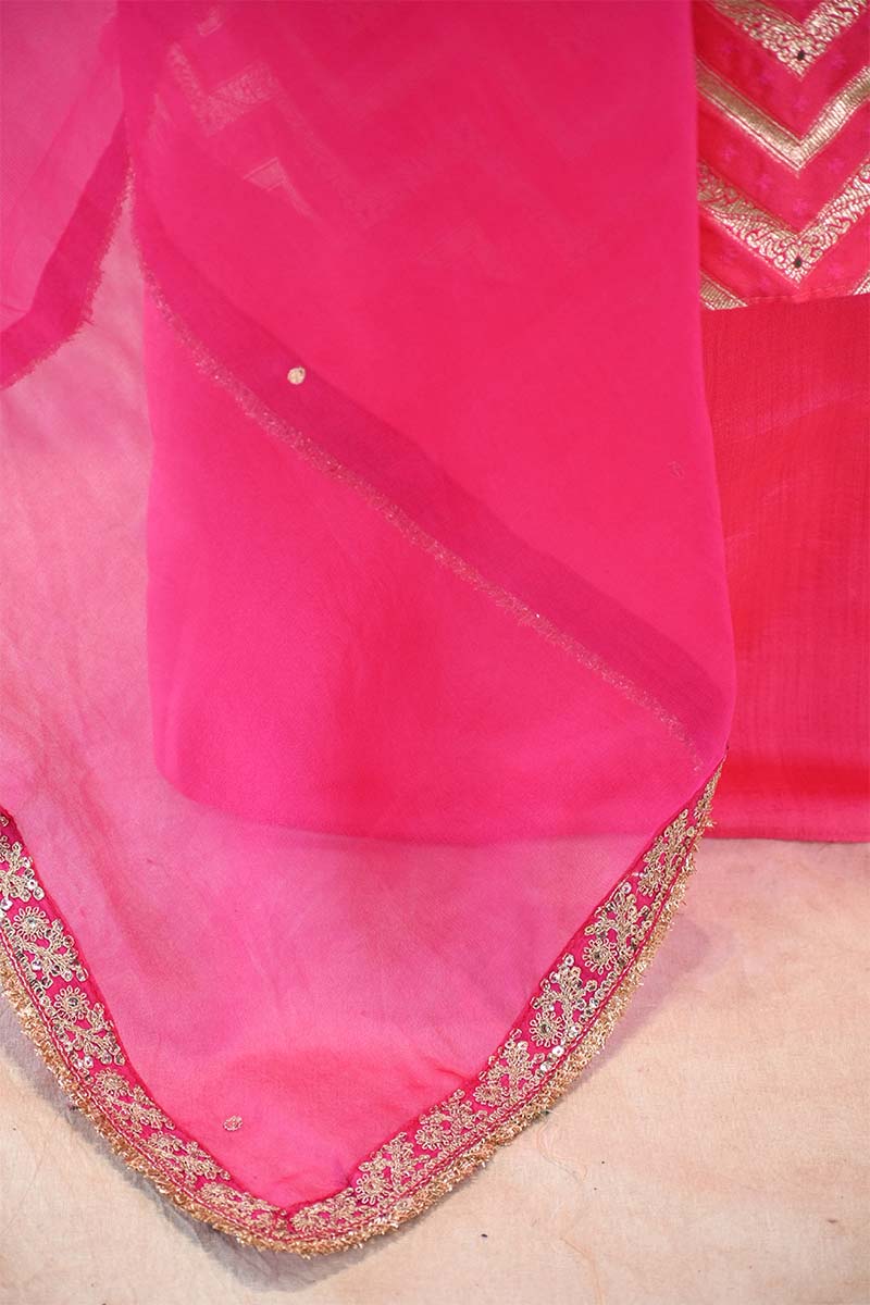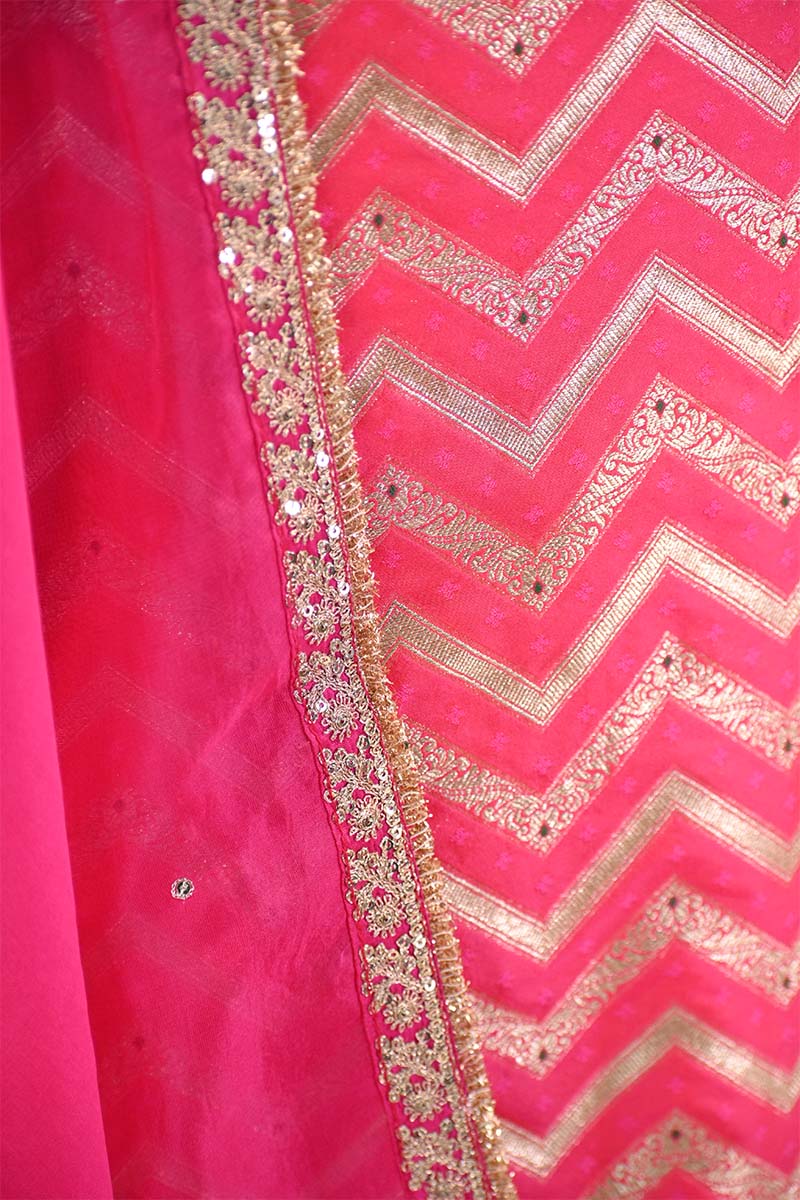 ⦁Fabric Type: Top: Banarasi Silk | Dupatta: Organza Silk | Bottom: Crepe Silk Pant Fabric