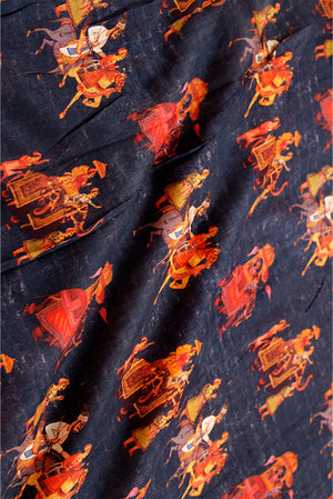 - This fabric highlights intricate block-printed figures motifs, adding an essence of grace and fashionable allure. - Category: Fabric