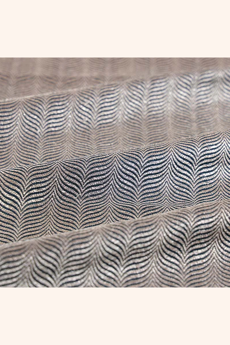 Indulge in luxury with our Banarasi Katan Silk Fabric, a testament to exquisite craftsmanship. Intricately handwoven with shimmering silver zari, it features alluring geometrical motifs adorning its surface. Each thread reflects tradition and opulence, making it ideal for creating timeless ethnic attire and statement pieces. Elevate your wardrobe with this regal fabric, perfect for those seeking elegance and sophistication in every stitch.