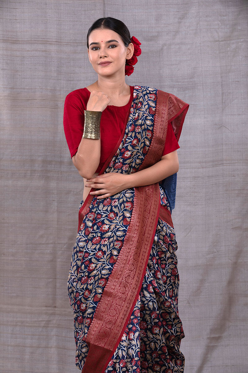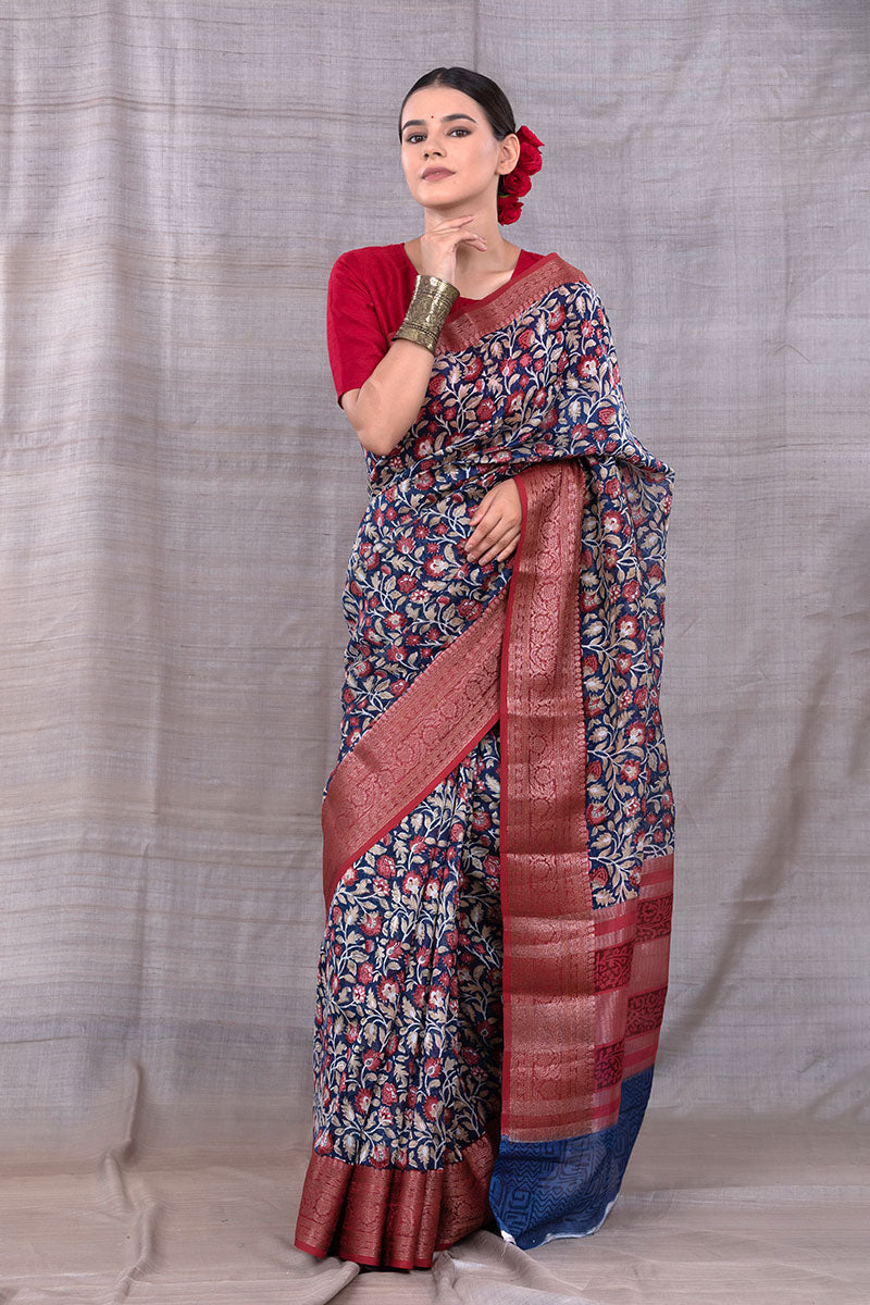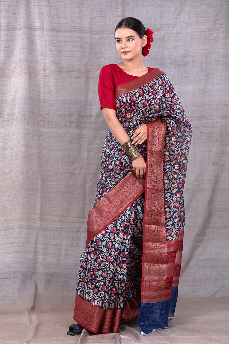 Step into a world of timeless elegance with the Chanderi Silk Saree. Adorned with breathtaking block printed floral designs, this saree exudes the essence of summer and celebration. Its vibrant hues and intricate copper zari woven contrast border and pallu instantly transport you to a realm of tradition and grandeur. Perfect for festive occasions, this saree captures the essence of Indian craftsmanship and will make you the center of attention wherever you go. Embrace the allure of Chanderi silk and indulge in a sartorial masterpiece.