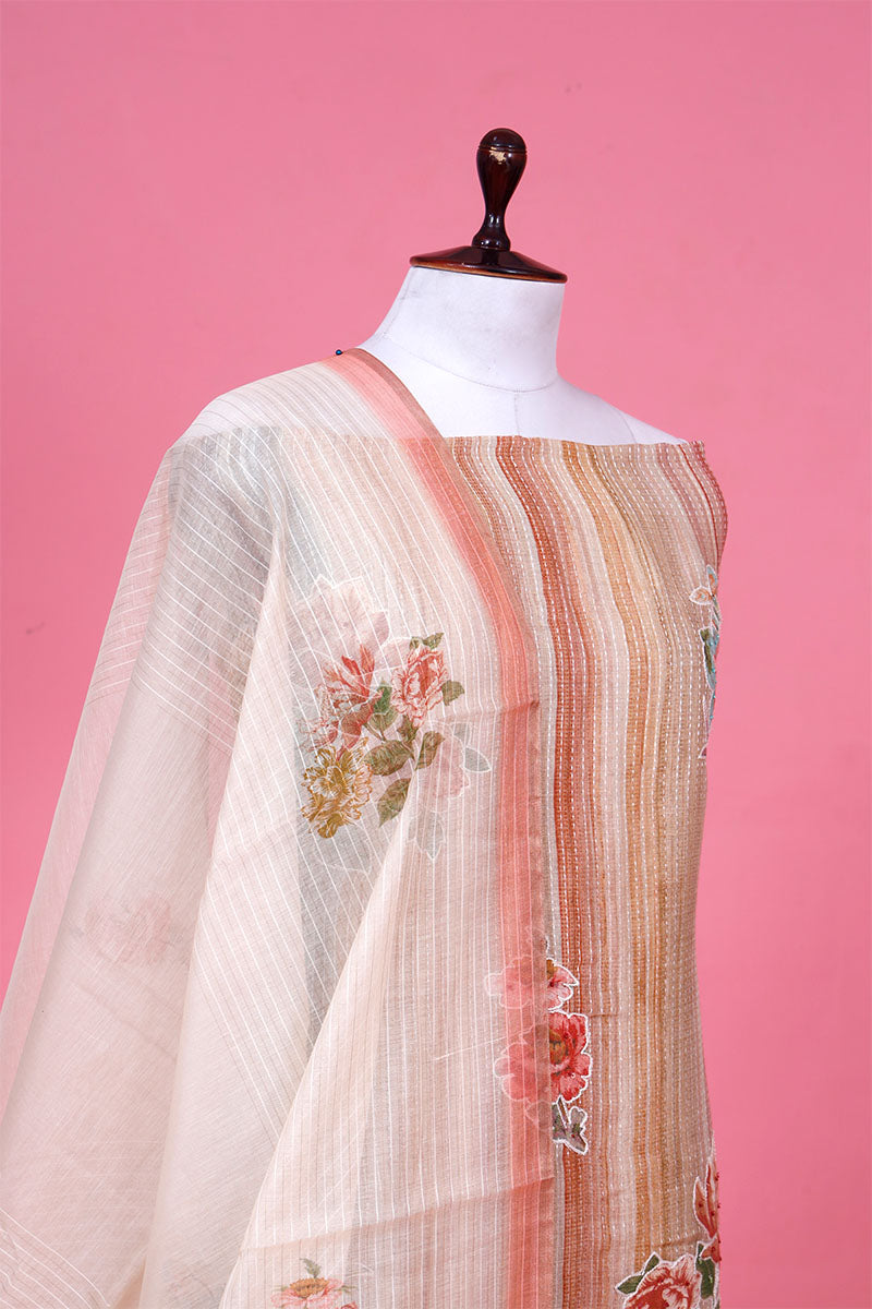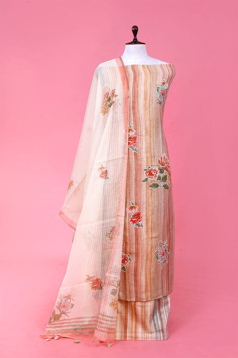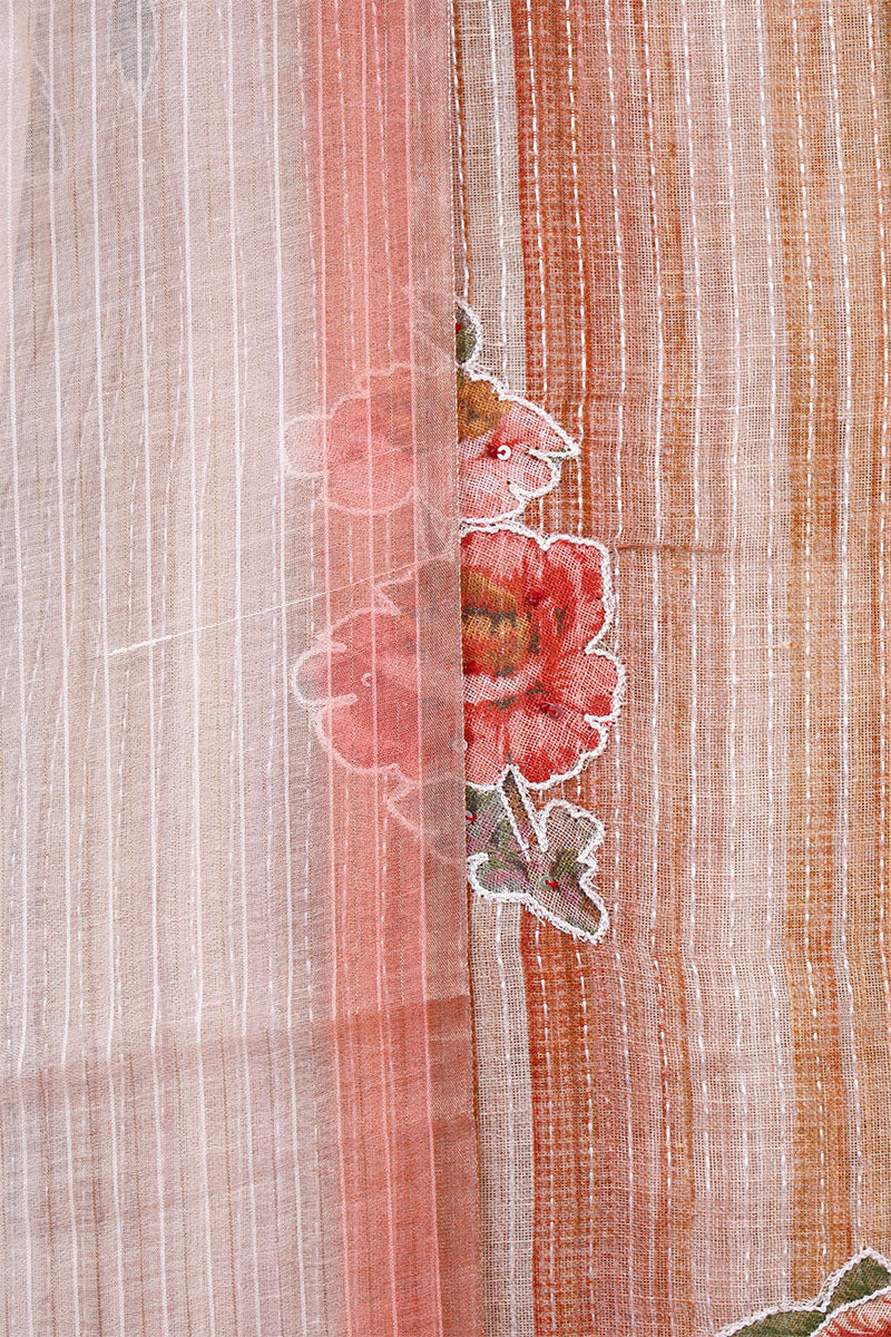 • Uplifts with gold zari stripes woven & floral printed mulmul cotton dupatta