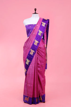 Are you in search of a perfect balance of style and comfort in a saree? You are in the right place. Pick up this crimson silk saree that is a perfect fit for your wardrobe. Designed in a quality Banarasi fabric, it assures a soft and soothing touch against the skin. The gold Zari handwoven pichwai motifs on the border make it a fascinating choice. Pair this with an unstitched blouse piece and antique jewellery and chokers to look elegant.