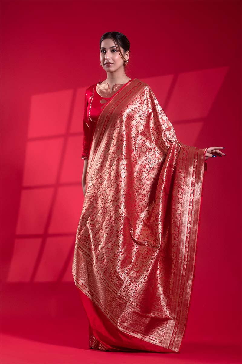 Tips: Pair this red Banarasi Katan silk dupatta with a matching red kurta for a cohesive look or opt for a contrasting gold kurta for modern ethnic look.
