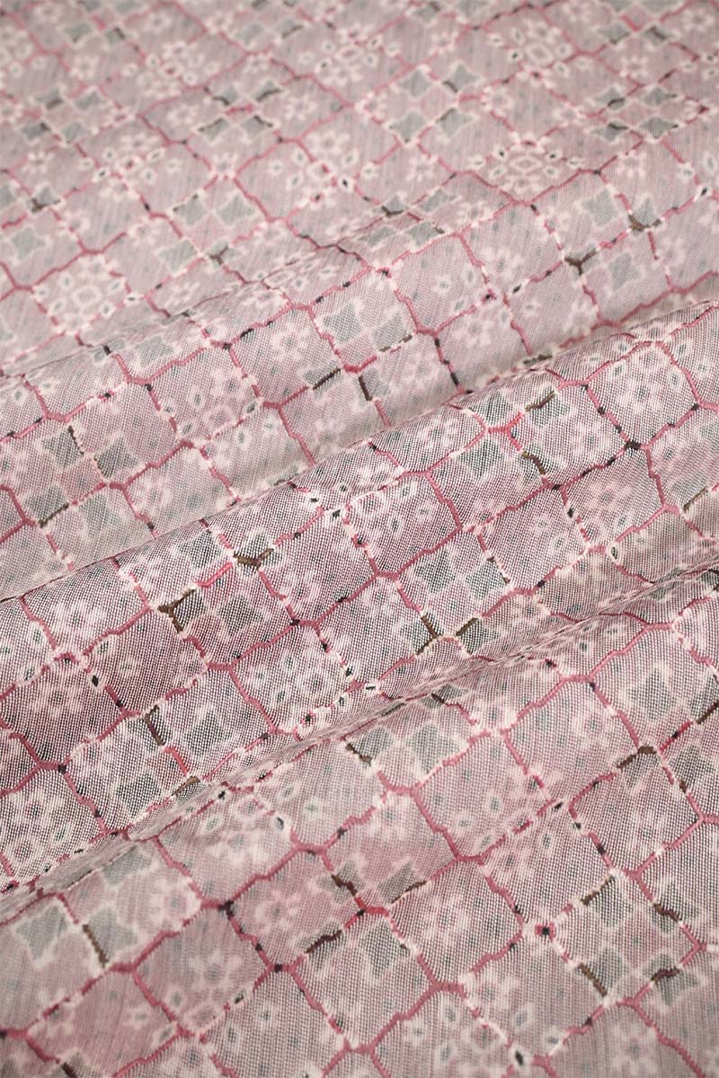 This Dusty Pink Semi Cotton Silk fabric features elegant Tanchui resham geometric patterns complemented by block print motifs all over the fabric. The soft dusty pink base adds a subtle, sophisticated charm, while the intricate resham and block detailing gives it a refined, contemporary ethnic appeal.