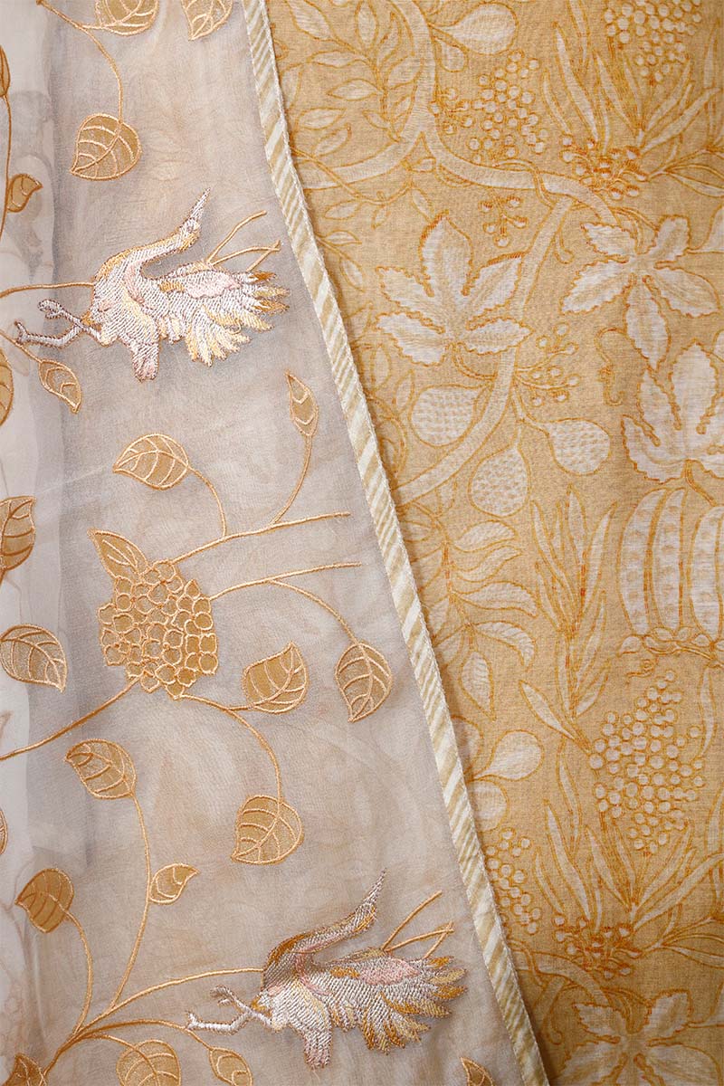 • Dupatta: Organza silk with appliqué birds and floral jaal pattern