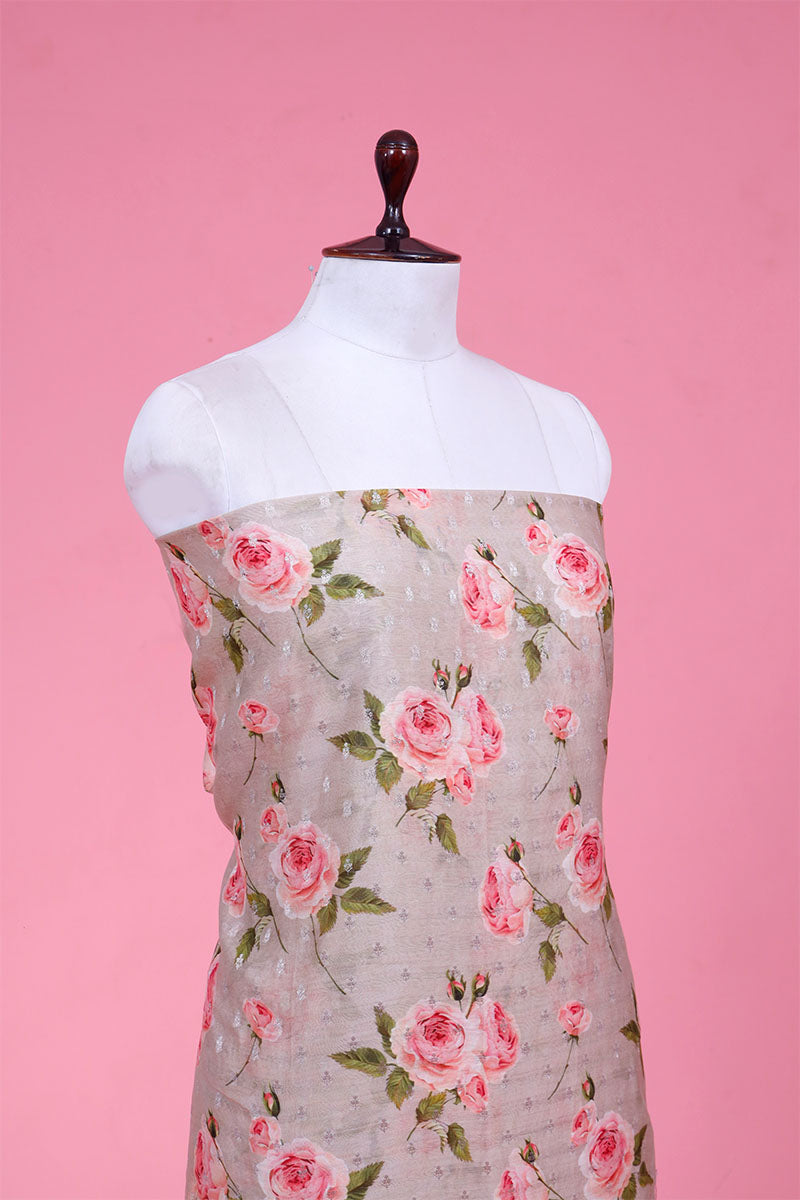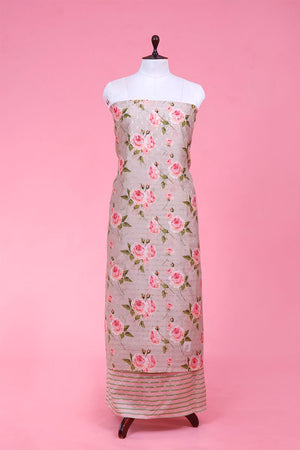 - This Grey Unstitched Suit Set In Chanderi Silk fabric.