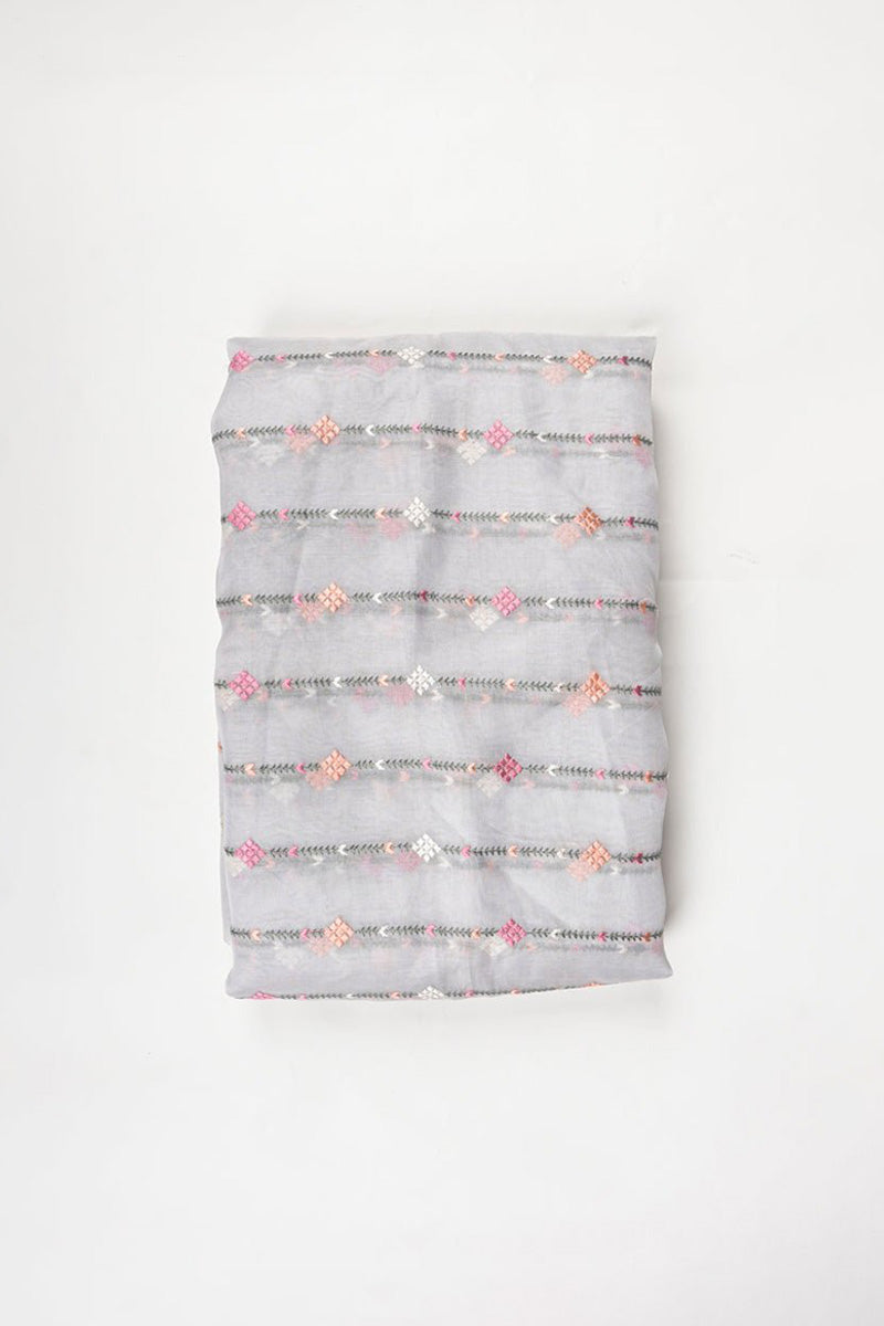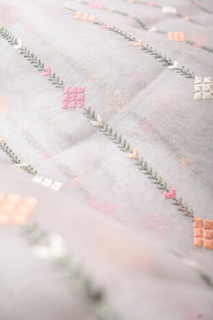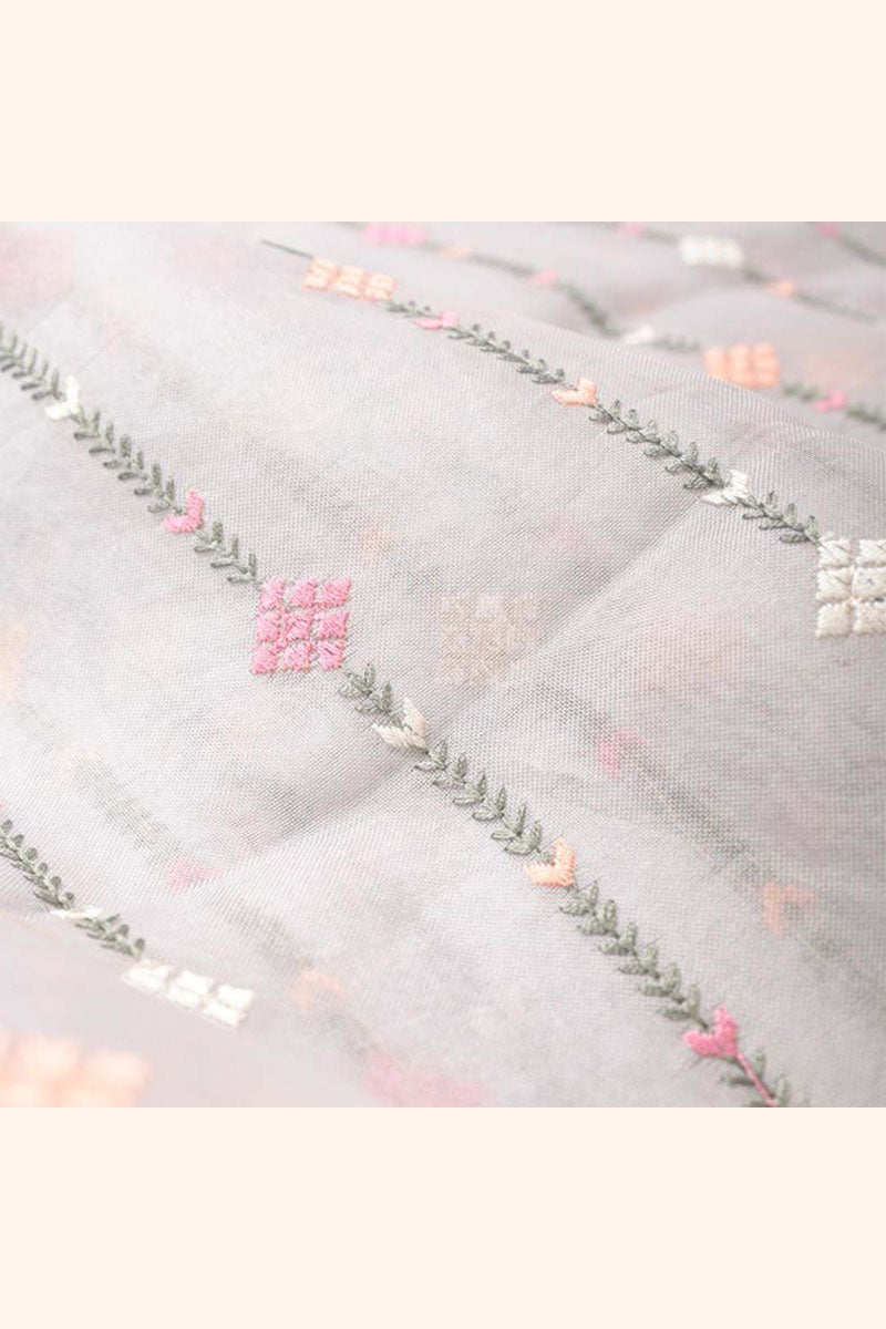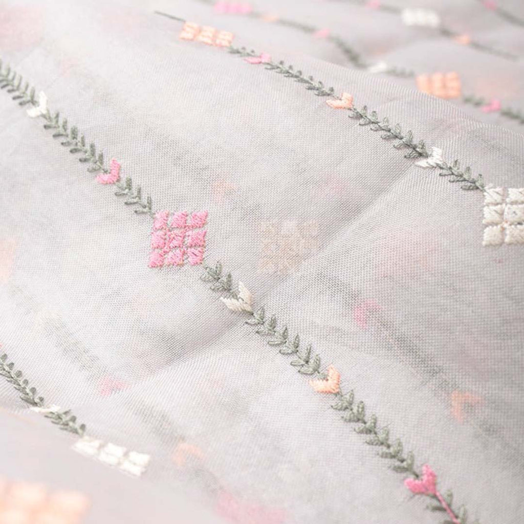 Beautiful organza silk fabric with floral embroidery worked with fancy colorful embroidered stripes . Smooth and rich material which will enhance your beauty.