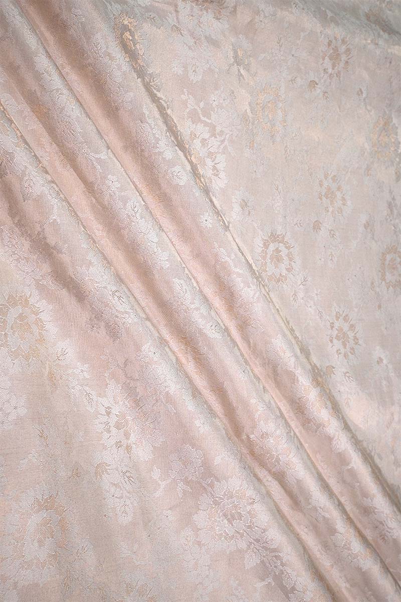 This ivory white Katan silk tissue silk fabric features delicate floral resham tanchoi work. The lightweight and smooth feel making it a unique choice for contemporary and traditional outfits.