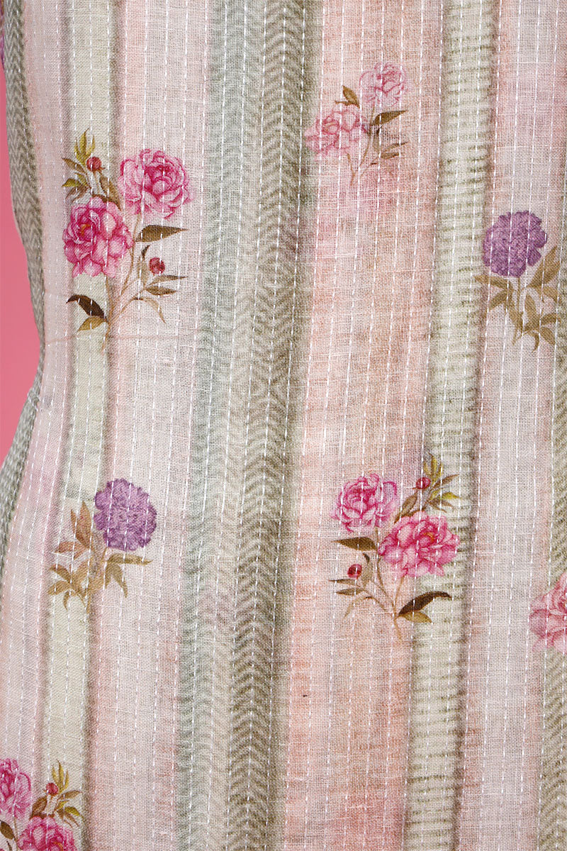 • Elevated with a Kantha Embroiderey and beautiful floral motif digital prints all over kurta fabric and comes with a matching cotton bottom.