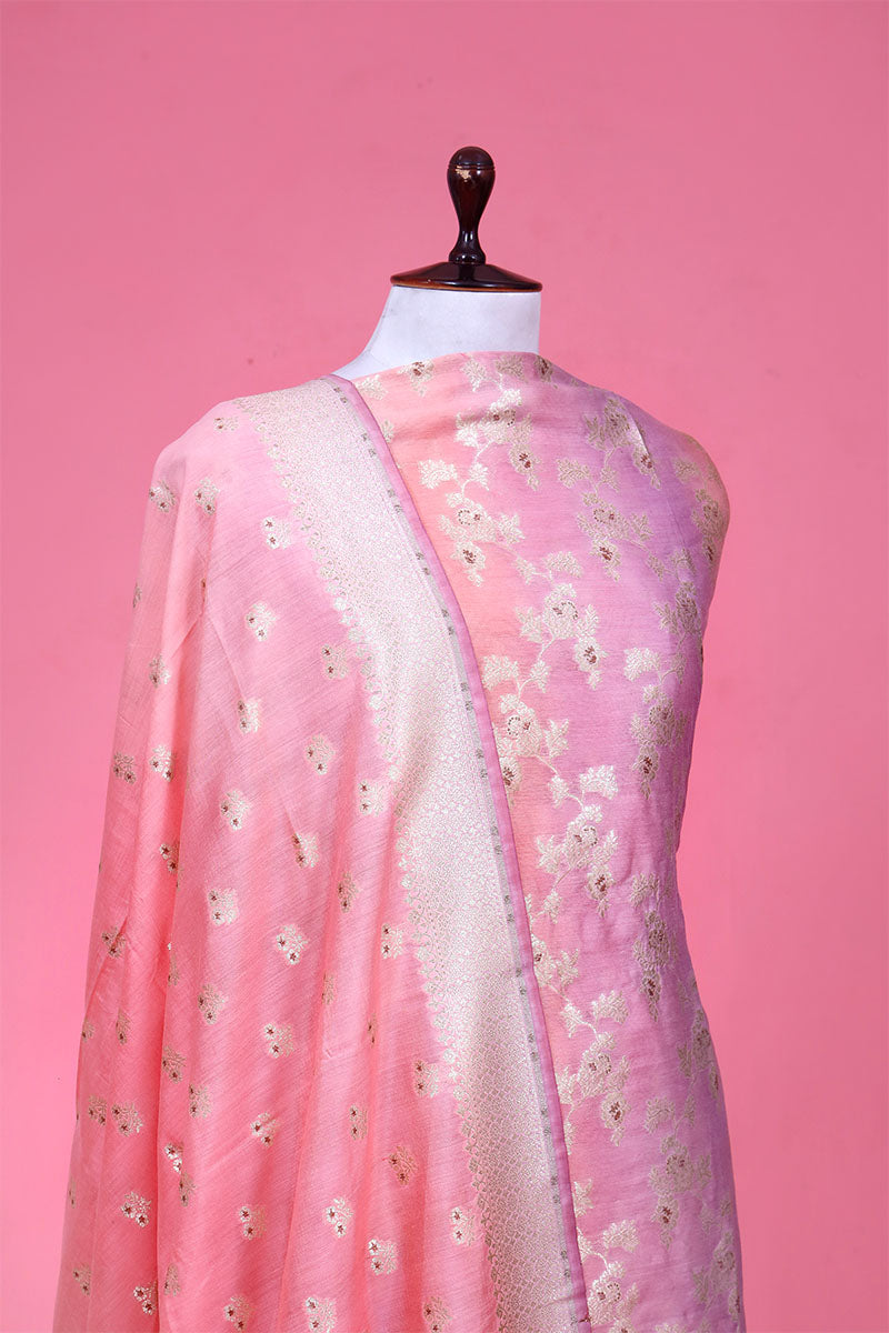 • Emphasize with watergold zari and meenakari woven beautifully enhanced floral motifs dupatta