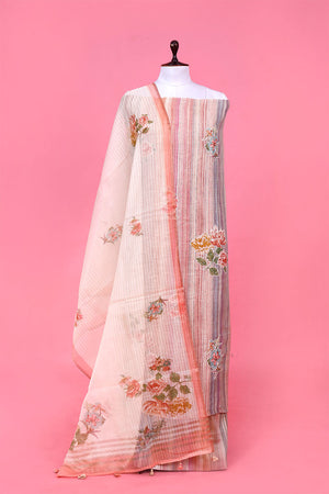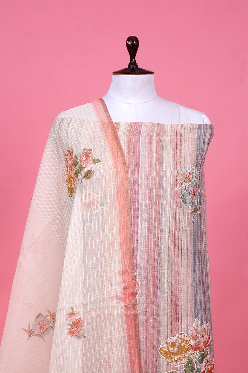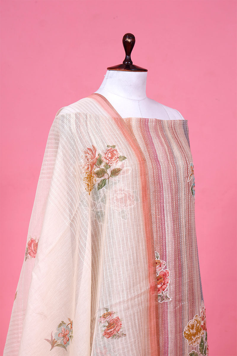 • Uplifts with gold zari stripes woven & floral printed mulmul cotton dupatta