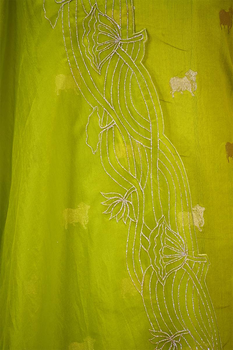 • Color: Light Green • Kurta features gold zari woven Pichwai motifs all over