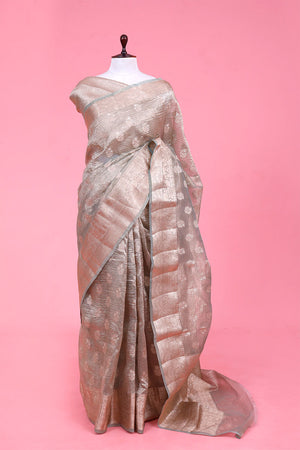 - This saree is feature with intricate woven buti and gold zari woven border and pallu - Complimented with an Unstitched Blouse Piece