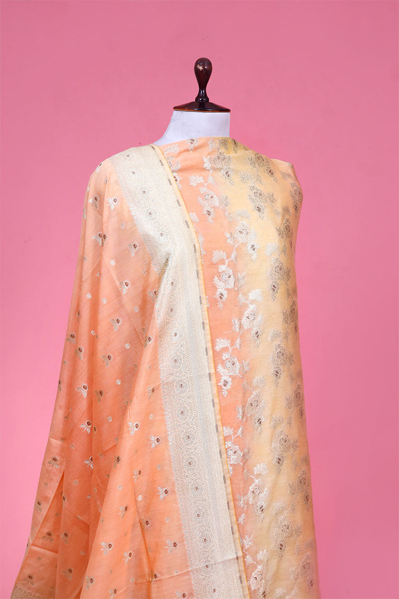 • Emphasize with watergold zari and meenakari woven beautifully enhanced floral motif dupatta.