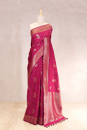 Styling Tips: Pair this saree with gold jewelry and a matching potli bag for a complete traditional look.
