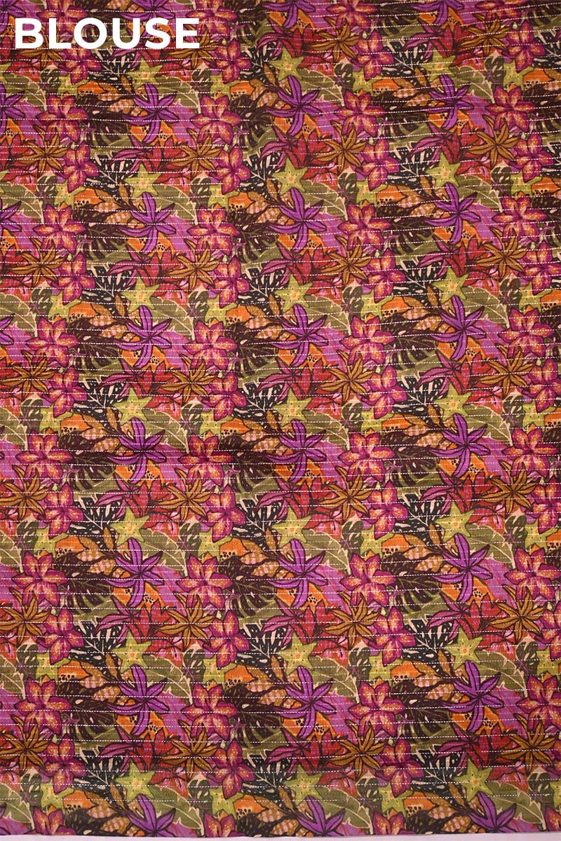 • Blouse Details: Chiniya silk blouse fabric with golden zari woven stripes and floral prints