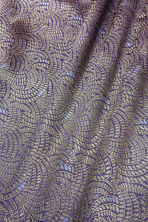 This mauve brocade Banarasi silk fabric is beautifully woven with a combination of gold and silver zari with an intricate jaal woven pattern. The sophisticated design makes it a perfect choice for creating an exquisite blouse or dress.