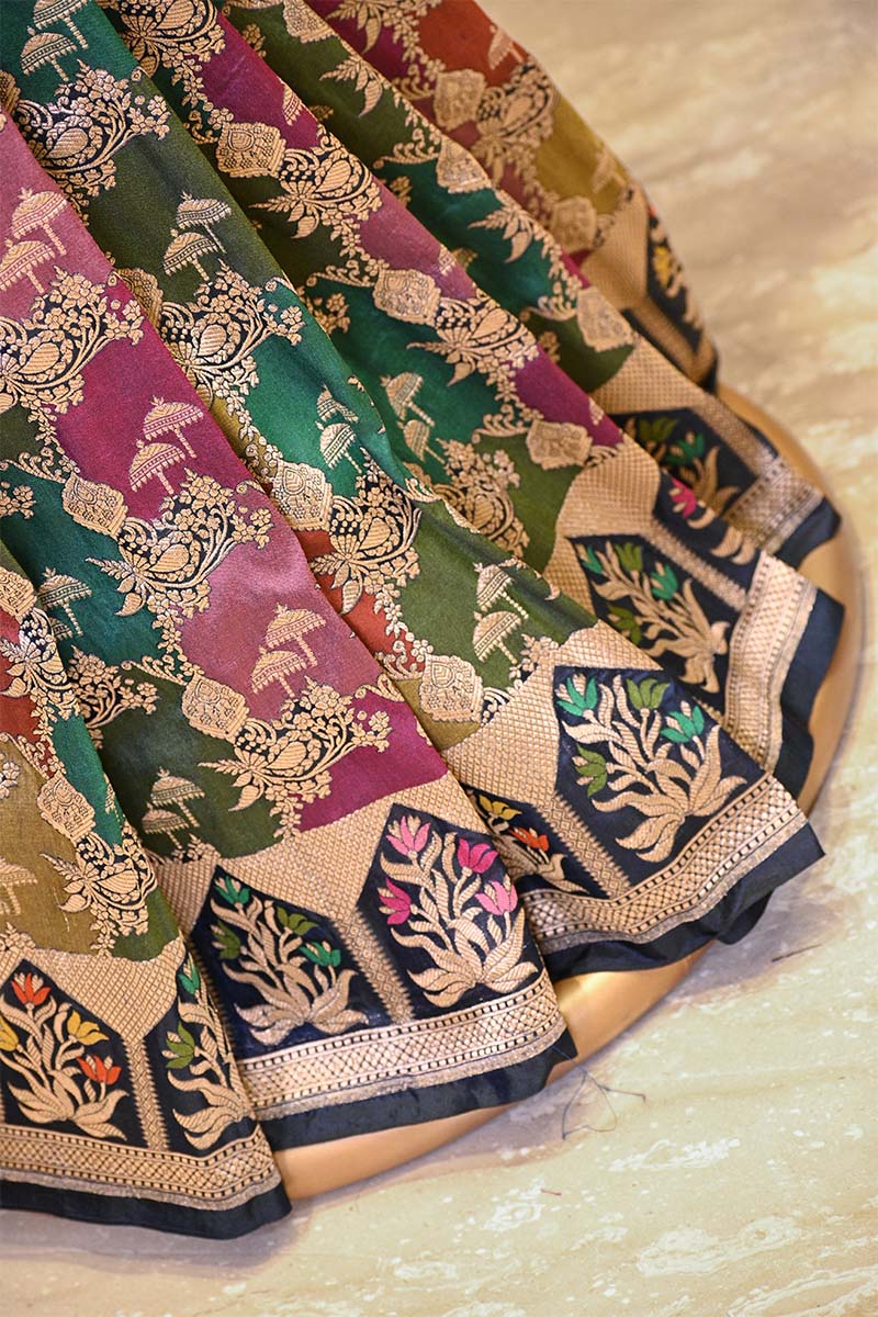 • Water Gold Zari Jaal Woven Design Over the Saree, Border, and Pallu