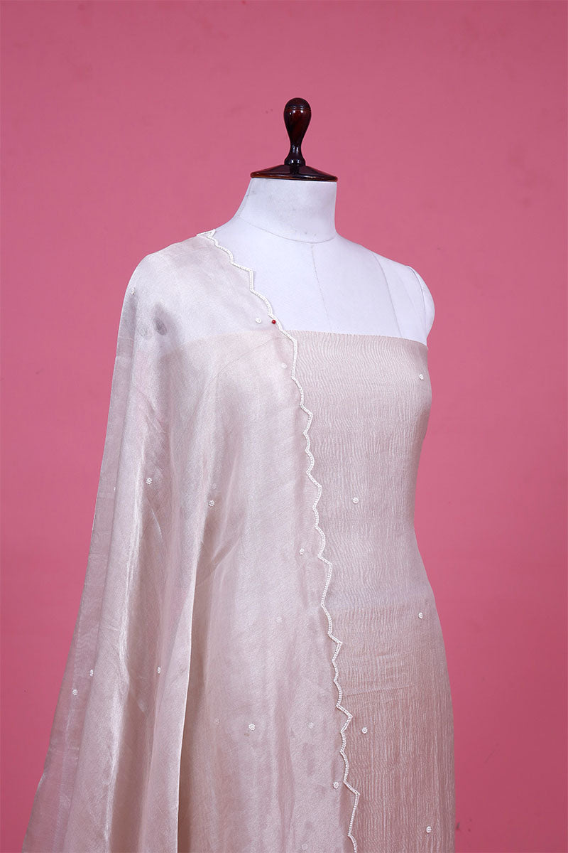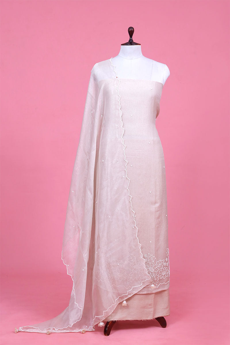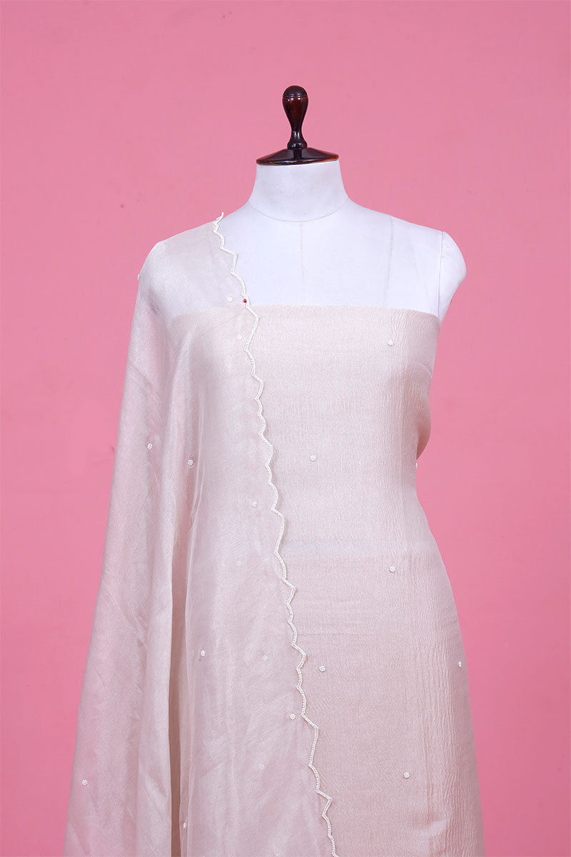 - Off White Unstitched Suit Set In crushed tissue silk fabric.