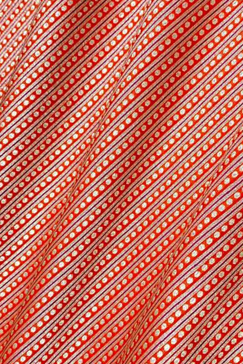Indulge in sophistication with our Banarasi Katan Silk Fabric. Adorned with intricately woven silver zari ethnic motifs, it boasts elegant stripes that add depth and charm to any creation. Each thread is a testament to skilled craftsmanship, perfect for crafting luxurious ethnic attire and accessories. Elevate your wardrobe with this timeless fabric, effortlessly blending tradition and modernity to make a statement wherever you go.
