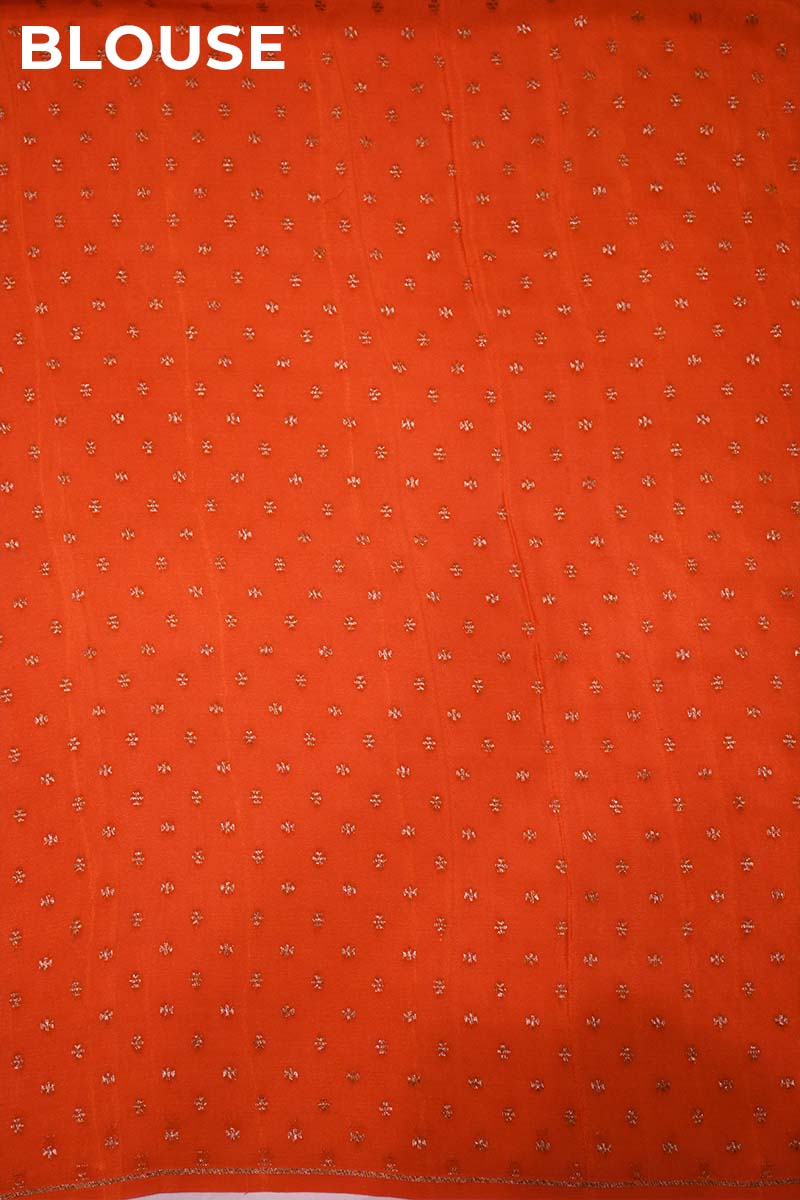 Styling Tips: Pair this orange saree with silver jewelry and a potli bag for a festive, coordinated look.
