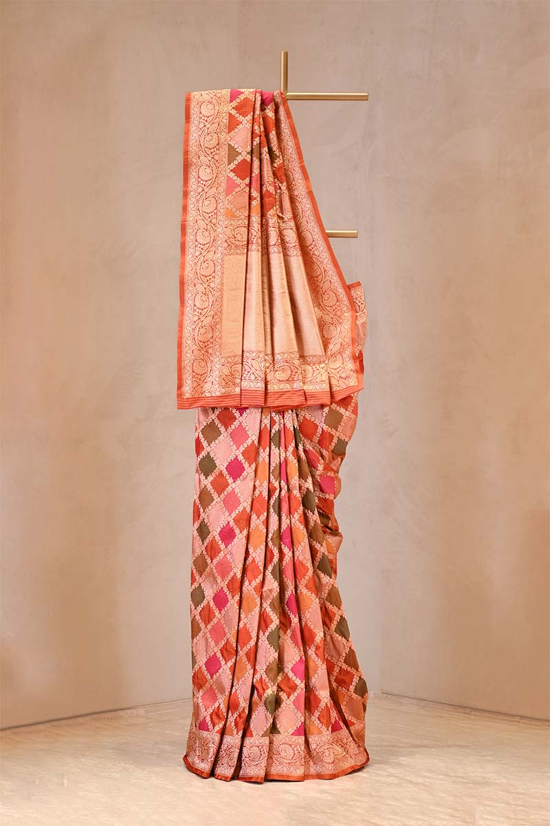 • Motifs/Designs: Watergold zari woven geometrical motifs with rangkat weaving