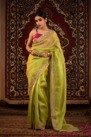 • Parrot Green Saree is in Organza Silk Fabric