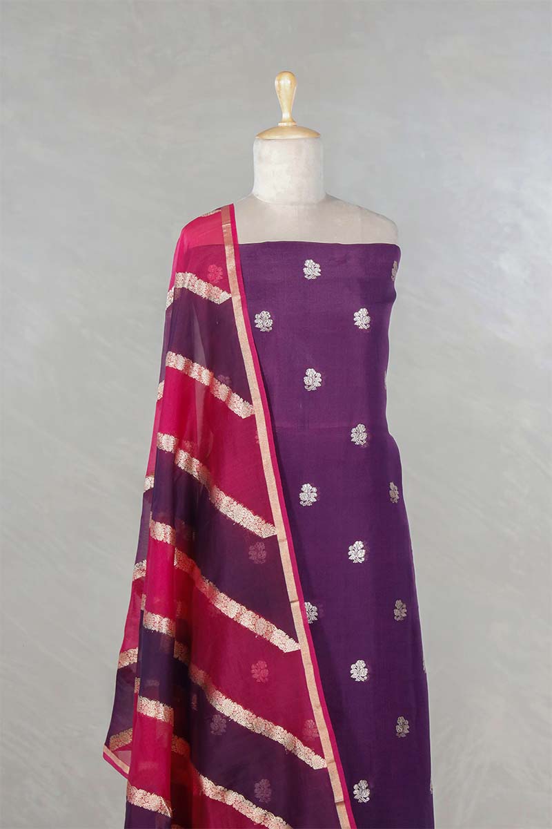 • This Purple Suit Piece In Organza Silk Fabric