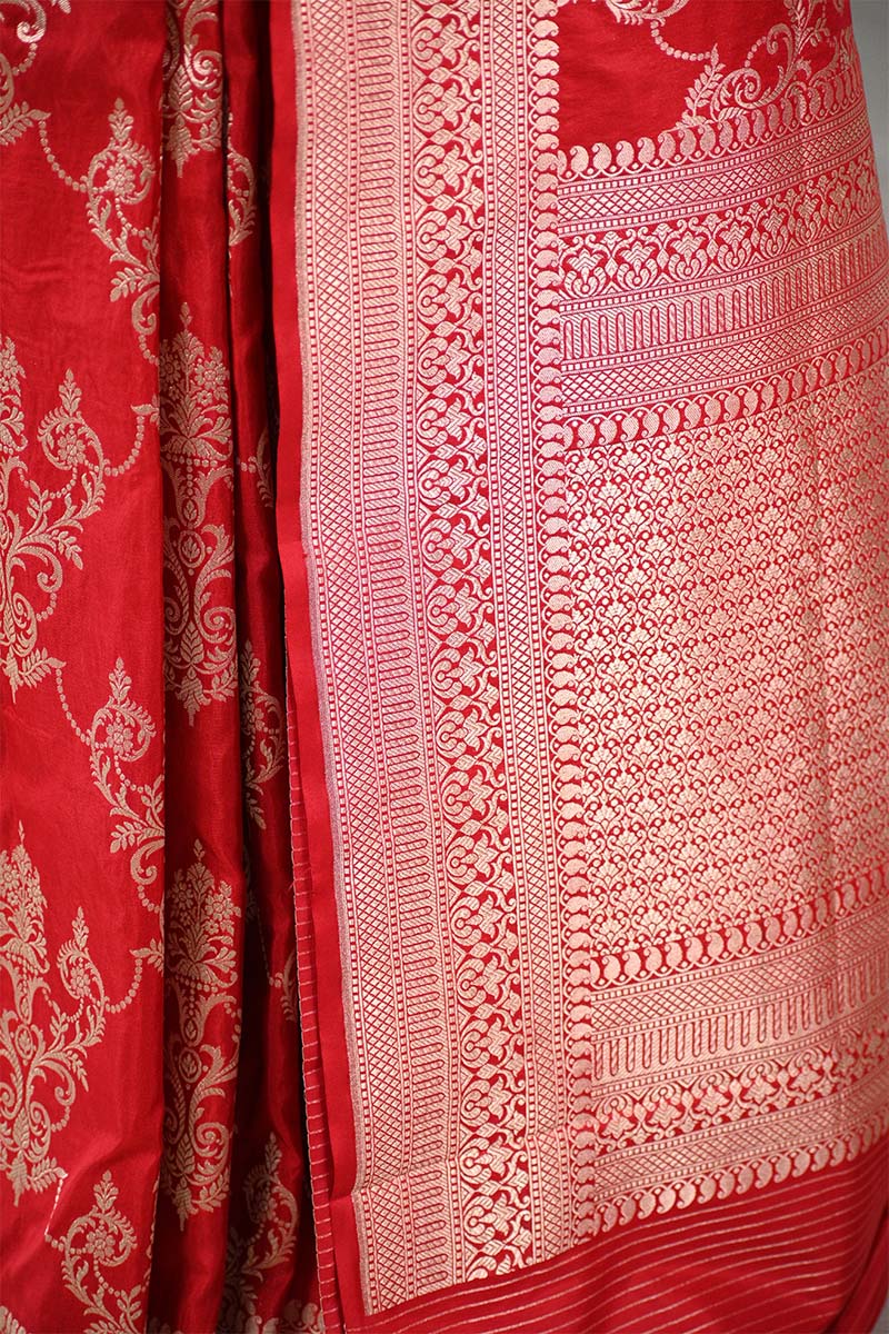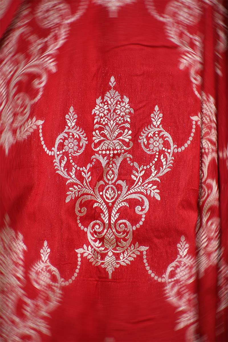 • Motifs/Designs: Floral gold zari woven ornaments inspired by royal architecture