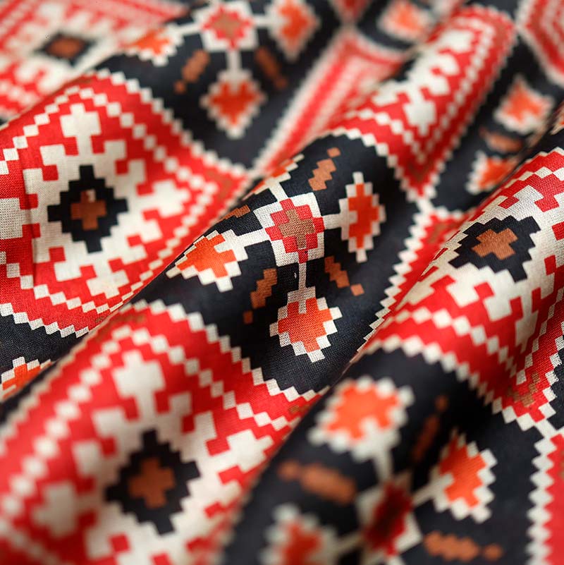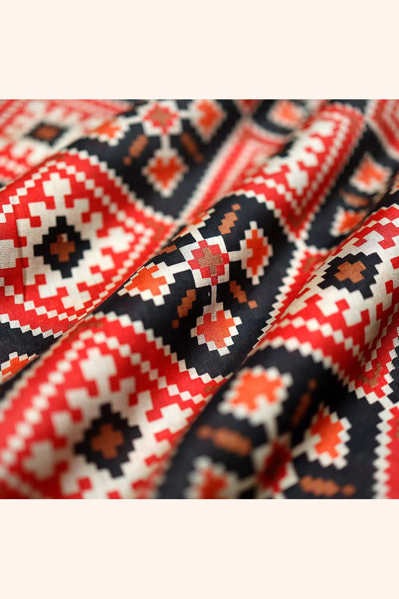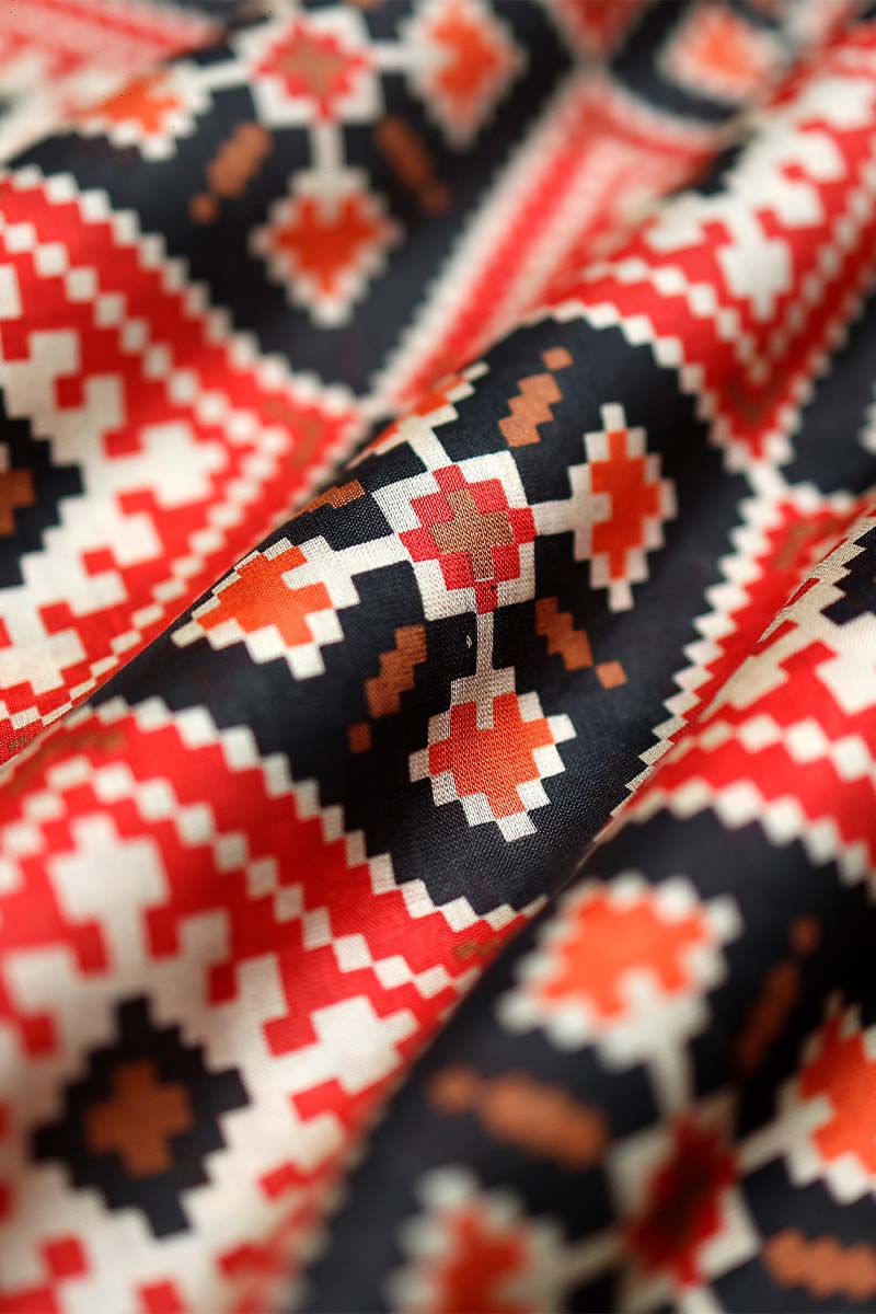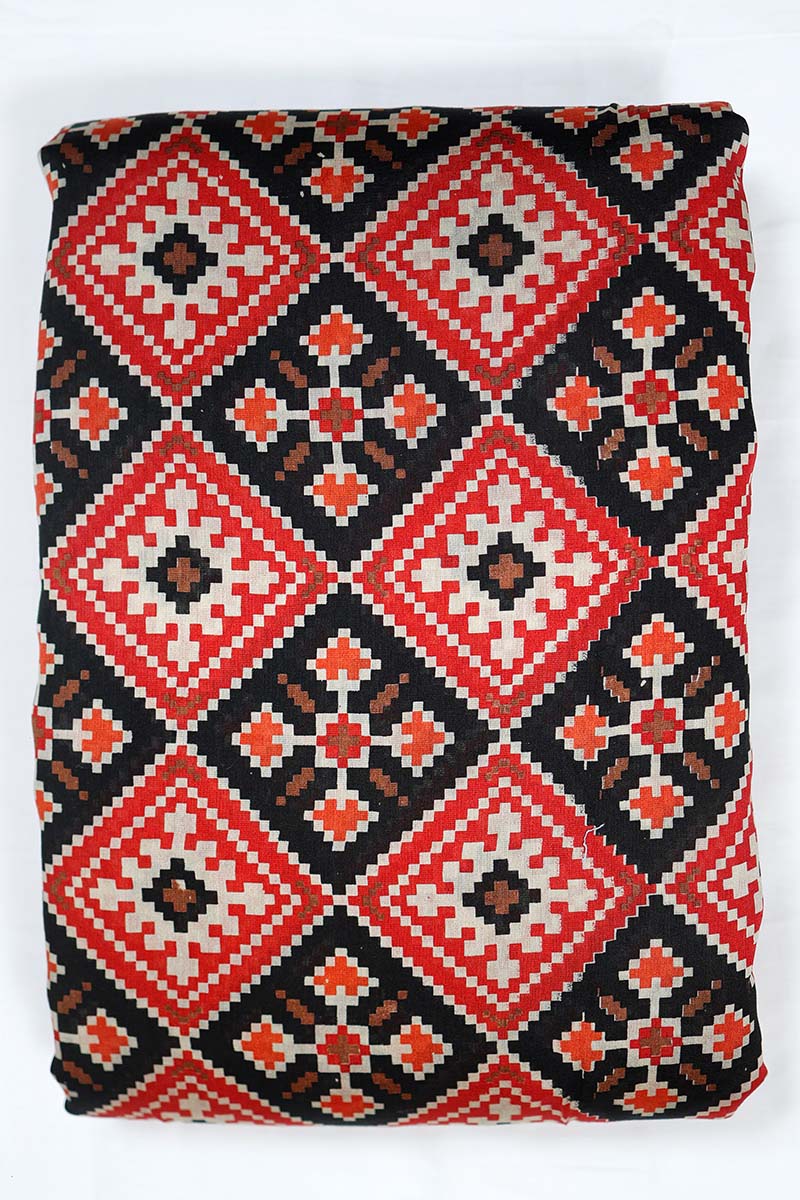 Introducing our exquisite Black interwoven with Red Chanderi Silk fabric, adorned with captivating digital printed Patola motifs that elegantly grace its luxurious surface. This opulent textile embodies sophistication, merging the depth of black with intricate, vibrant Patola designs accentuated by rich red hues. Perfect for creating statement fashion or decor pieces, its detailed prints promise a fusion of cultural richness and refined elegance. Elevate your creations with this Chanderi Silk fabric, a seamless blend of tradition and contemporary allure that adds sophistication to every project.