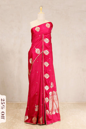 Styling Tips: Pair this red saree with traditional gold jewelry and a matching potli bag for a premium festive or wedding look