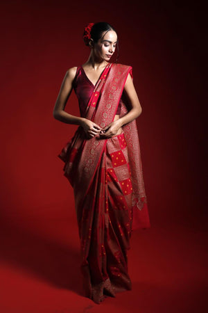 • Color: Red • Antique Zari Woven Geometrical Ethnic Motifs