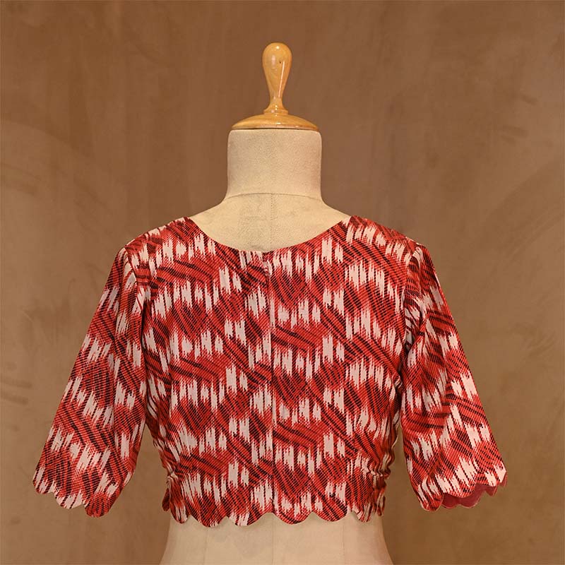 Our Geometric Print Blouse is a versatile companion to any solid saree, effortlessly elevating your ensemble. Its captivating printed motifs complement a variety of hues, ensuring a seamless match with your favorite sarees. Whether it's a vibrant pop of color or a classic neutral, this blouse is the perfect choice to add a touch of elegance to your look.