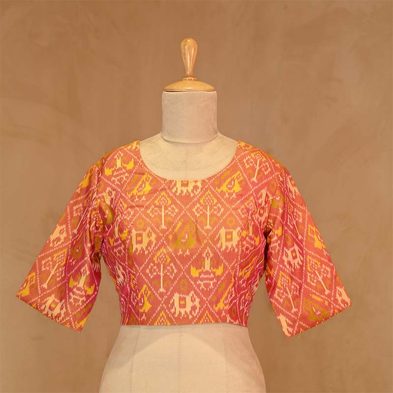 Presenting our Ikat Print Blouse, a fusion of tradition and contemporary style. Adorned with vibrant printed Ikat motifs throughout, this blouse exudes cultural charm. Its classic round neckline and flattering half sleeves offer timeless elegance. Perfect for adding a pop of color and pattern to any ensemble, it's a versatile piece that effortlessly transitions from day to night.
