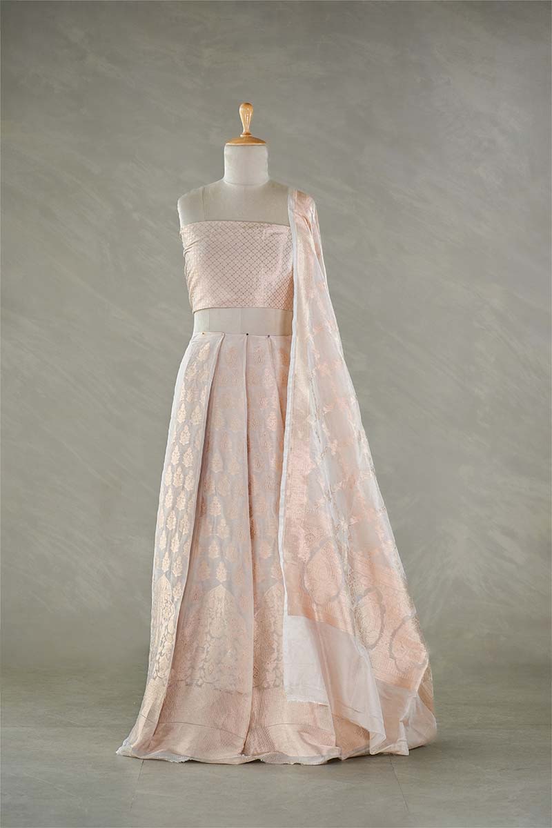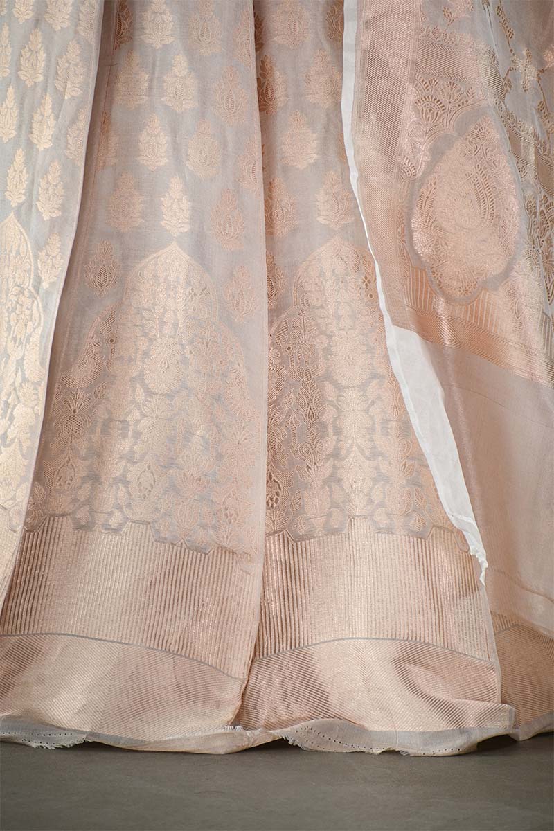 • Matching gold zari woven katan silk dupatta with Floral design (can be dyed to any color)