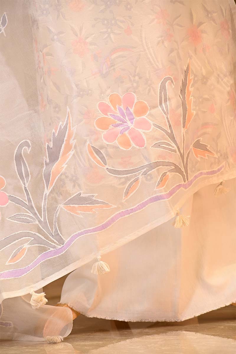 • Kurta features multicolored resham embroidered floral jaal all over, including the hemline