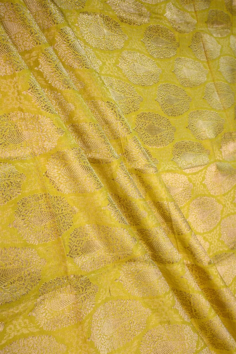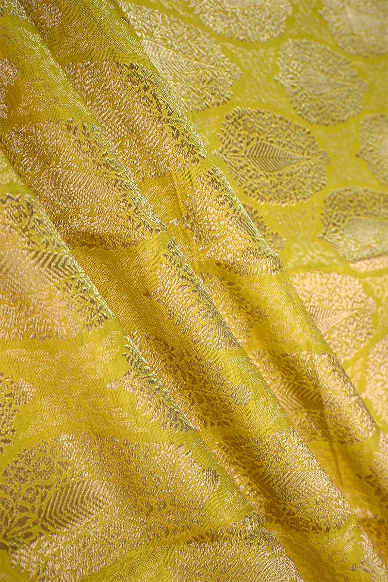 • Styling Tips: This yellow Banarasi silk fabric is ideal for designing traditional blouses, saree borders, or lehengas where the floral buta with detailing enhances the overall look.